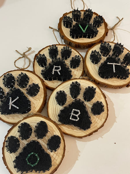 Dog Paw ornament that can be hung on the Christmas tree, wine bottles, or in the office in your cubical office!